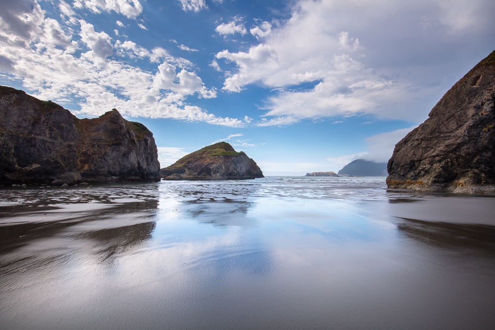 An afternoon storm just clearing and the tide receding combine to bring wet, unmolested sand to reflect on this short lived moment.